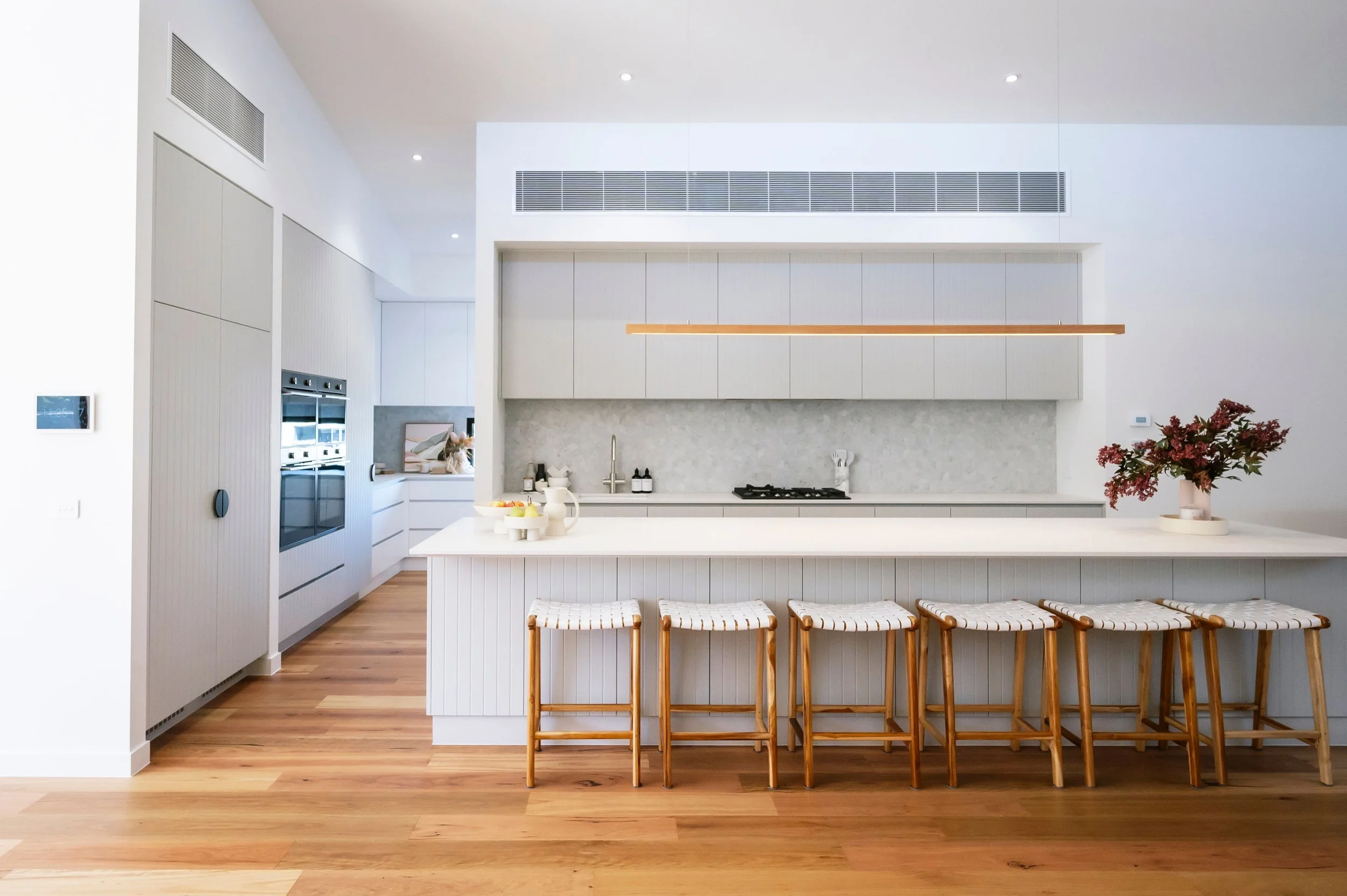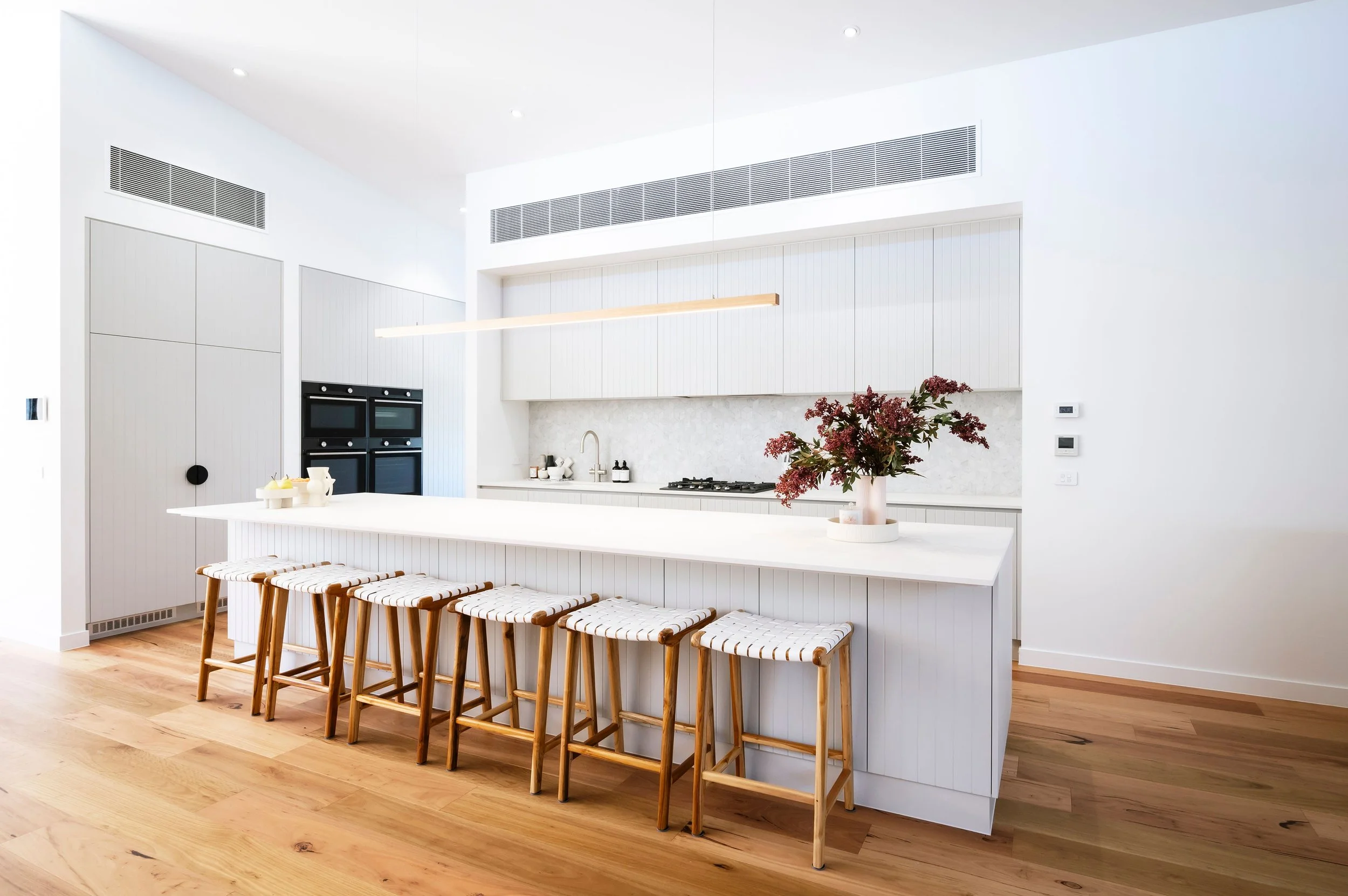 From its high ceilings, pitched roof and elongated lines, this family home has it all. Layers of texture, warm timber tones and muted grey hues tick all the right boxes. Proving that functionality doesn’t have to come at the expense of aesthetics, this project is as dreamy and divine as its luxury beachside location.
